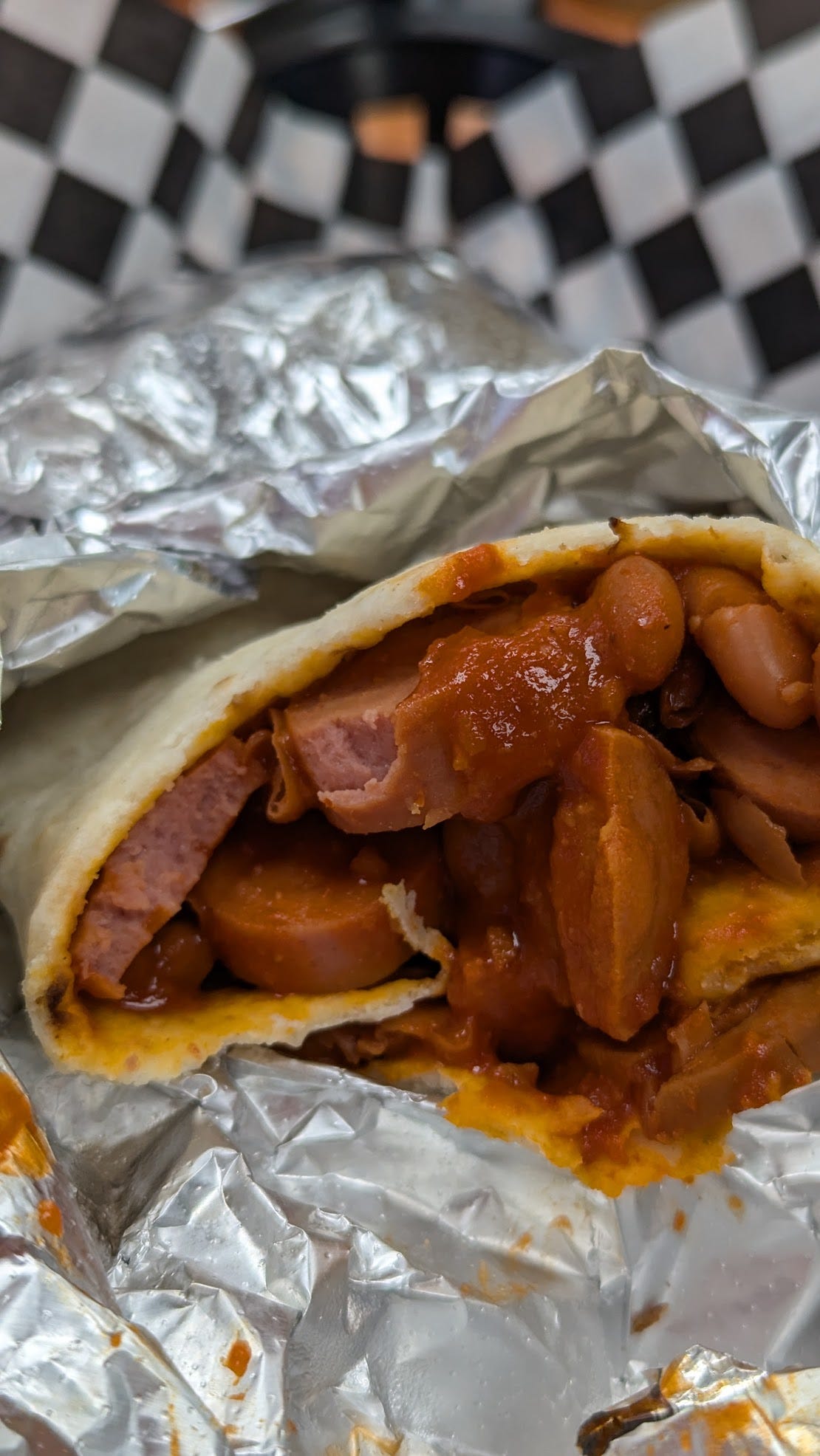 In many of the burrito places found in Juarez the cheapest burrito for sale is a “Burrito de Winnie”. It’s a guisado made of winnie, franks, hotdogs, whatever you wanna call them sauteed in onions, tomato, chile and tomato sauce. The winnies over on the Mexican side of the border are usually RED, as opposed to pink here on this side. So seeing the guisado de winnies next to the rest really makes it stand out, almost animated, a Studio Ghibli version of food. It’s also usually the cheapest burrito because winnies themselves are cheap. I know that the use of hot dogs as the protein in all kinds of food is not unique to Juarez, but this application at the very least is prevalent there. I hadn’t had one in years. Went from finding them at every burrito place, to never seeing them anywhere.